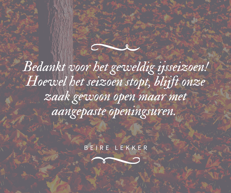 Om jullie te blijven verrassen van ons ambachtelijk roomijs kan er seizoensgebonden nieuwe smaken terug te vinden zijn op onze webshop.